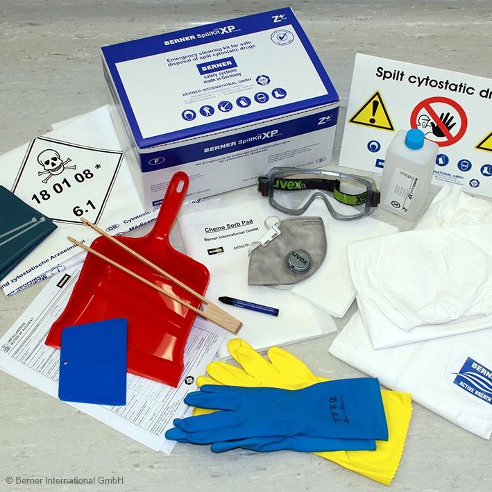 Zuverlässiger Rundum-Schutz zur besonders sicheren Beseitigung von Zytostatika. Das SpillKit XP ist baumustergeprüft und zertifiziert. Es enthält alle notwendigen Utensilien, um verschüttete Zytostatika gefahrenfrei in den Griff zu bekommen und sicher beseitigen zu können.