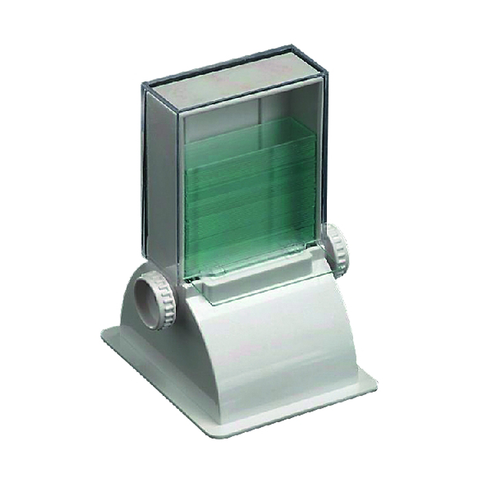 für 72 Objektträger der Standardgröße ca. 76 x 26 mm, staubgechützte, zweckmäßige Aufbewahrung, ein Objektträger stets griffbereit, bei Entnahme durch seitliches Anfassen keine Fingerabdrücke, Lieferung ohne Objektträger