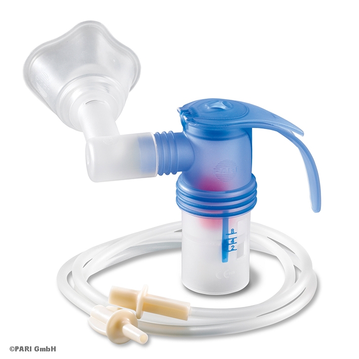 Medikamentenvernebler für Babys 0 1 Jahr, mit Ventilsystem (Düsenaufsatz rot), BABY Winkel, BABY Maske Gr. 1 und Anschlussschlauch (female/male) (2,1 m)