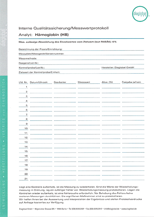 Protokollvordruck für Hämoglobin -kostenlos-