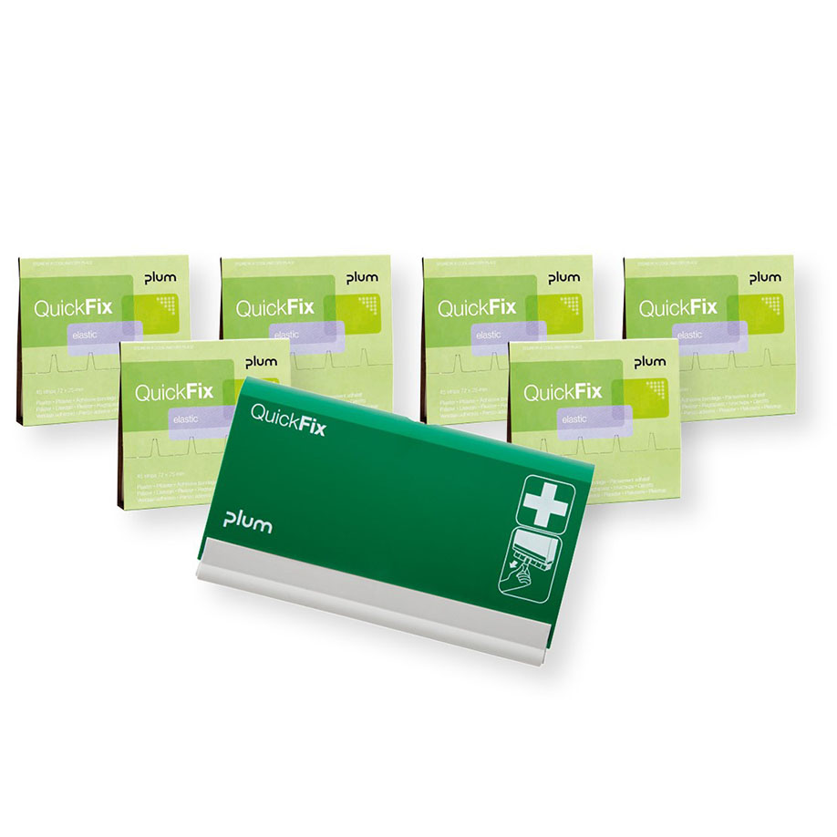 QuickFix ist ein Pflasterspender (aus Kunststoff) der an die Wand montiert wird und Platz für zwei Pflasterrefills bietet. Die Pflaster sind immer sofort verfügbar und entpacken sich beim Herausziehen von selbst. Jedes Pflaster ist einzeln verpackt und kann mit einer Hand auf die Wunde aufgetragen werden. Der Spender kann je nach Bedarf mit unterschiedlichen Pflastersorten befüllt werden.