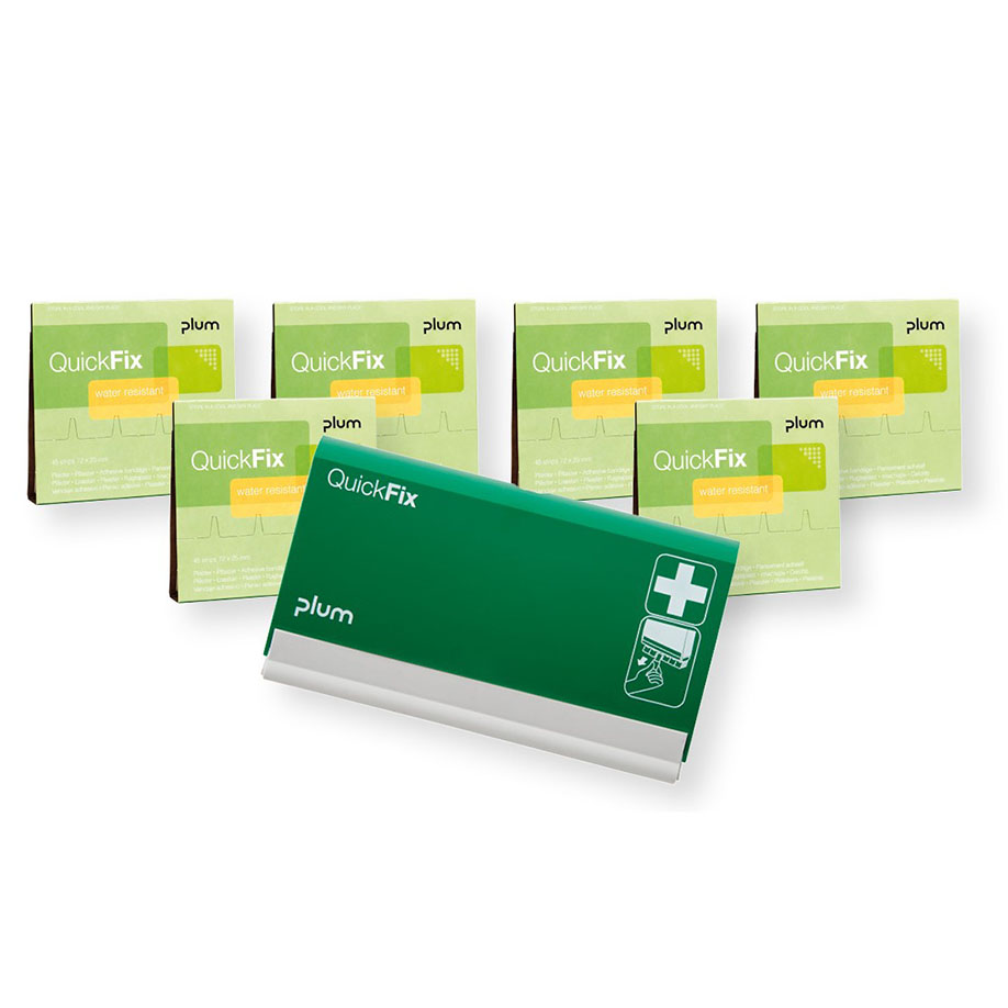 Starterset bestehend aus: 1x QuickFix Pflasterspender leer, 6x Refills water resistant á 45 Stück