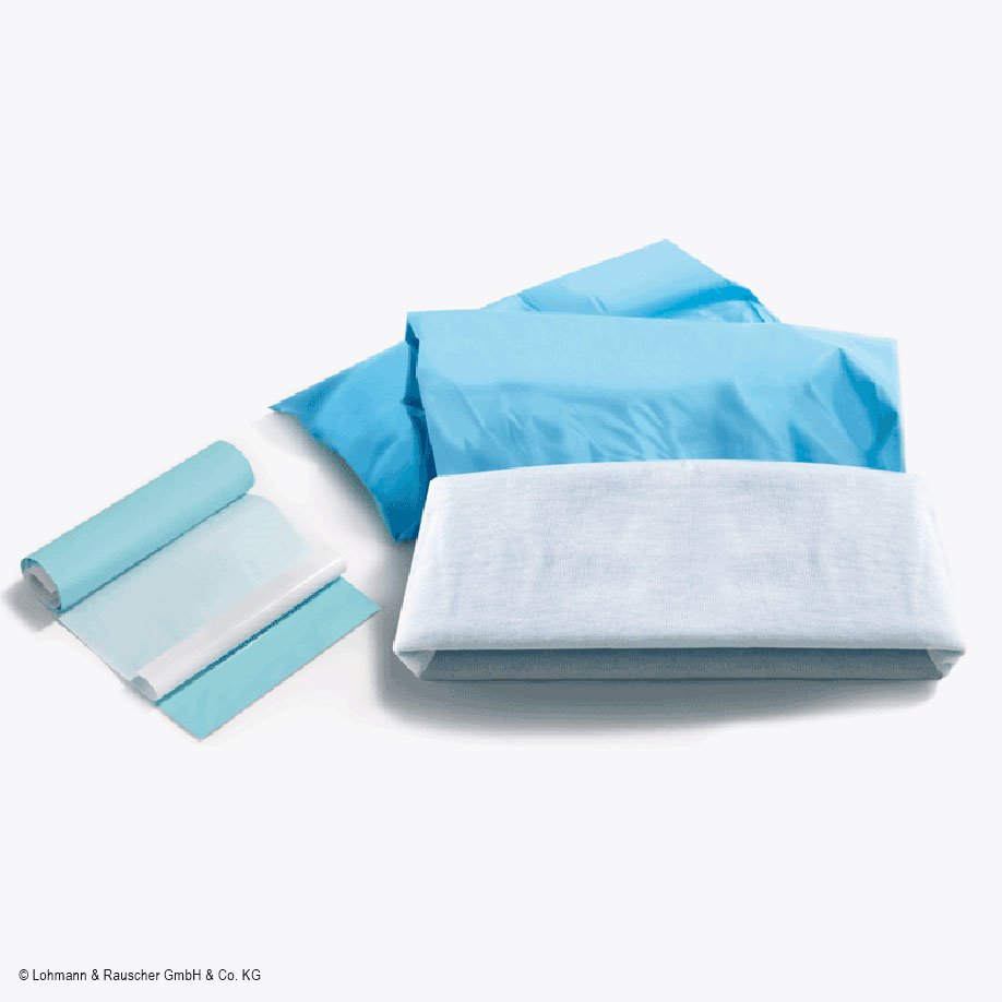 Undurchlässiger Spezialbeinling zur Abdeckung bei Knie- oder Schulterarthroskopien, inkl. einem Klebestreifen.