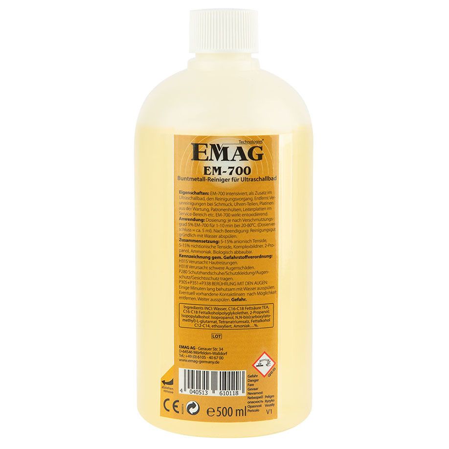 entfernt leichte Verunreinigungen, wirkt entoxydierend, geeignet für: Patronenhülsen, Leiterplatten, Platinen aus der Wartung, Schmuck, Uhren-Teile etc. ., Anwendung: 5% EM-700 (Bezug zur Füllmenge) für 1-10 min. Reinigen.