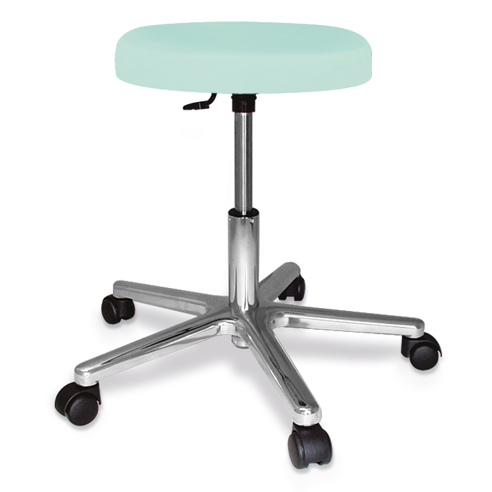 Fußkreuz: Ø 60 cm, Polsterhöhe 70 mm, keine Nähte für eine leichte Desinfektion, Sitzfläche Ø 38,5 cm, höhenverstellbar von 45 - 59 cm, Höhenverstellung durch Gasdruckfeder, harte Rollen für weiche Böden, max. Tragkraft 135 kg