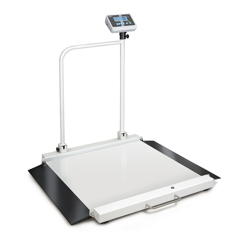 - besonders geeignet für das Wiegen von Patienten in Rollstühlen, durch die beidseitig befahrbare Plattform mit niedriger Bauhöhe