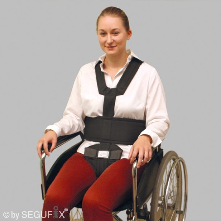Zur Stützung des sitzenden Patienten. Stützt den Oberkörper und verhindert gleichzeitig ein Abrutschen von der Sitzfläche. Zur Anwendung von freiheitsentziehenden Maßnahmen. Voraussetzung für Anwendung: Spalt zwischen Sitzfläche und Rückenlehne, Befestigung hinter der Rückenlehne mit einem Schloss. Bestehend aus: 1 SEGUFIX®-Rückhaltegurt, 1 SEGUFIX®-Schrittpolster (Nr.6040), 1 SEGUFIX®-Schloss, 1 SEGUFIX®-Schlüssel. Umfang Leibgurt: 122 - 162 cm, Verbindungsstück: 15 cm, Schulterkranz: 95 cm.