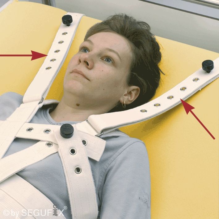 Verhindert das Aufrichten des Oberkörpers auf dem Bett. Verstärkte Ösengurte für höhere Beanspruchung. Zur Anwendung von freiheitsentziehenden Maßnahmen (auf ständige Beobachtung ist zu achten). Voraussetzung für Anwendung: SEGUFIX®-Standard mit Schrittgurt/Oberschenkelmanschetten erforderlich, SEGUFIX®-Schulterhalterung erforderlich. Gesamtlänge: ca. 114 cm. Bestehend aus: SEGUFIX®-Schulter-Zusatzgurt, 2 SEGUFIX®-Schlösser (SEGUFIX®-Schlüssel separat bestellen). Geeignet für: SEGUFIX®-Schulterhalterung (nicht für Größe XS), Akut-Fixierung Schulter, Tragegurt-Schulter, Kompakt