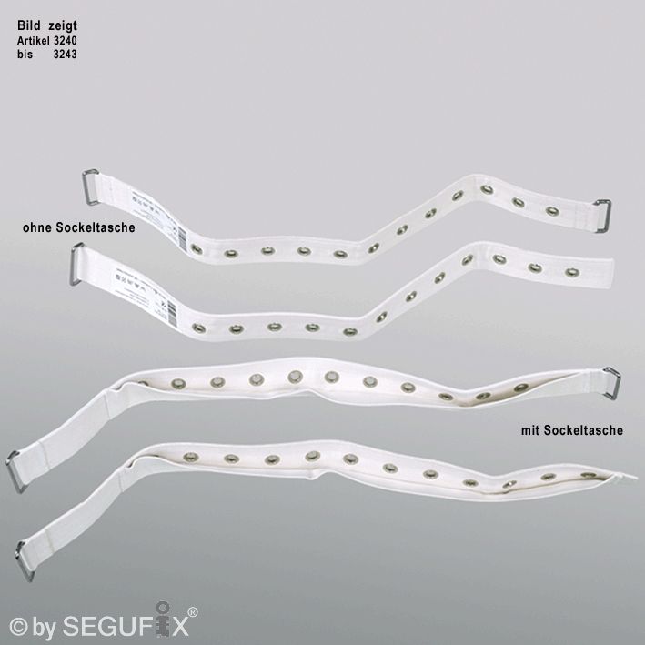 Verlängert Befestigungsgurte für die Anbringung an breiten Betten oder Rückenlehnen (nicht geeignet für die Verlängerung von Größen (z.B. Bauchgurte)). Verstärkter Ösengurt für höhere Beanspruchung. Bestehend aus: 1 SEGUFIX®-Verlängerungsgurt, 1 SEGUFIX®-Schloss und SEGUFIX®-Schlüssel. Gesamtlänge: 65 cm, 2 Metallschlaufen, 12 Ösen.