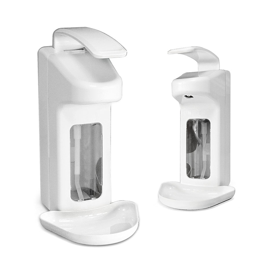 Seifen- und Desinfektionsmittelspender aus schlagfestem ABS-Kunststoff. Für die hygienische Dosierung von dünnflüssigen Desinfektionsmittel, Desinfektionsgel, Flüssigseife und Lotion. Die Dosiermenge kann auf 0,8 ml, 1,2 ml oder 1,8 ml pro Hub eingestellt werden.