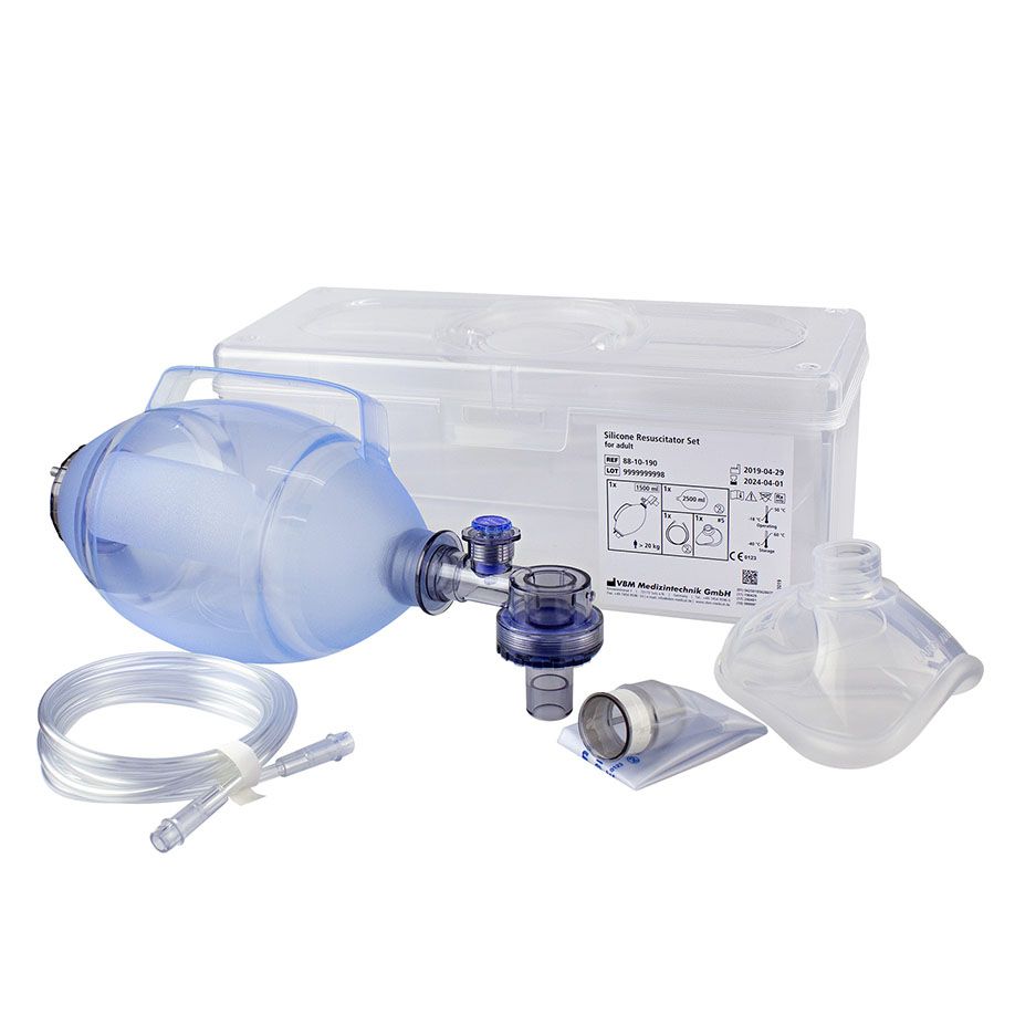 Silikon-Beatmungsbeutel-Set Erwachsene, in transparentem Koffer