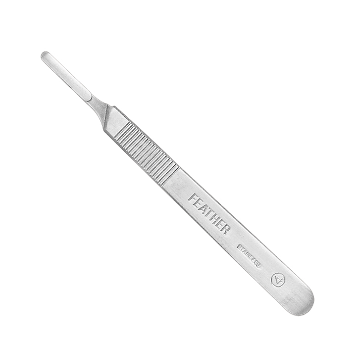 Der FEATHER-Handgriff eignet sich für Kohlenstoff- und Edelstahlklinge. Klinge kann leichtgängig aufgeschoben werden. Edelstahl, 125 mm lang, für Klinge Fig. 20, 21, 22, 23, 24, 25
