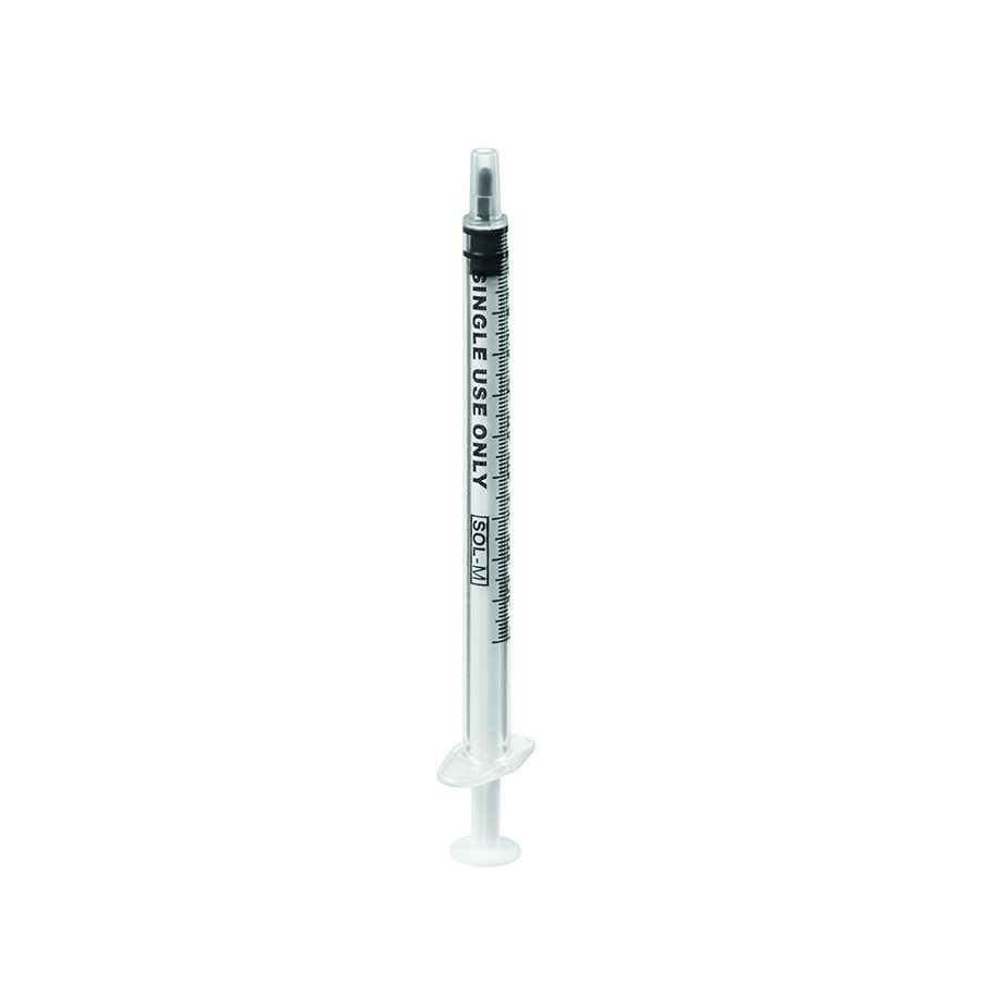 Dreiteilige 1 ml Einmalspritze mit Luer Ansatz.
