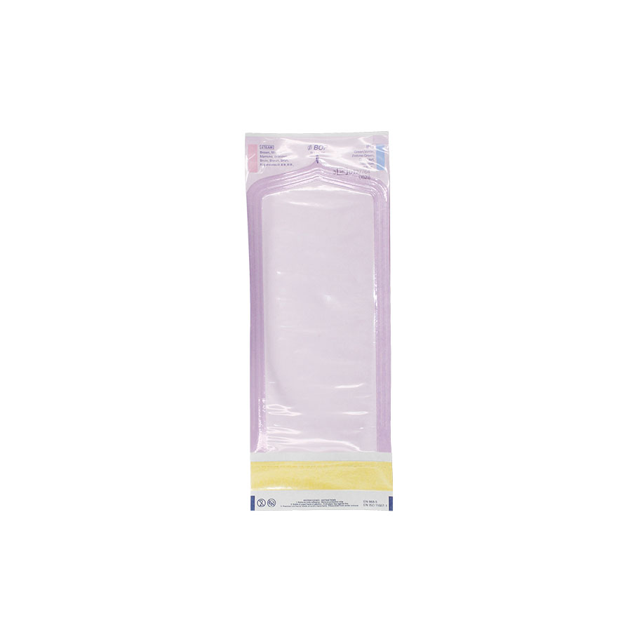 Selbstklebende Klarsichtbeutel mit manuell verschließbarem Selbstklebestreifen (Breite 19 mm), Eingriffsöffnung für leichteres Öffnen durch peelen. Mit Dampf- und EO-Gas-Indikator.