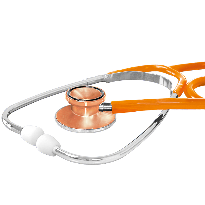 ausgezeichnete, variable Akustik durch Doppel-Bruststück, der Trichter des Bruststückes ist mit einem Kälteschutzring aus Gummi ausgestattet, außen liegende Ohrbügelfeder, mit weißen, harten Schraub-Ohroliven, 100% latexfrei und nickelfrei. Membrane: 43 mm Ø, Trichter: 30 mm Ø, Gesamtlänge: 80 cm, Gewicht: ca. 90 g