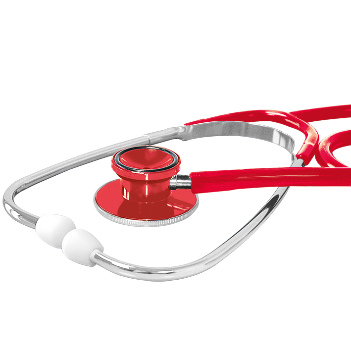 ausgezeichnete, variable Akustik durch Doppel-Bruststück, der Trichter des Bruststückes ist mit einem Kälteschutzring aus Gummi ausgestattet, außen liegende Ohrbügelfeder, mit weißen, harten Schraub-Ohroliven, 100% latexfrei und nickelfrei. Membrane: 43 mm Ø, Trichter: 30 mm Ø, Gesamtlänge: 80 cm, Gewicht: ca. 90 g