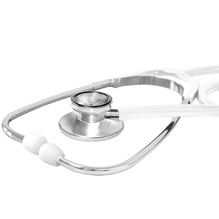 ausgezeichnete, variable Akustik durch Doppel-Bruststück, der Trichter des Bruststückes ist mit einem Kälteschutzring aus Gummi ausgestattet, außen liegende Ohrbügelfeder, mit weißen, harten Schraub-Ohroliven, 100% latexfrei und nickelfrei. Membrane: 43 mm Ø, Trichter: 30 mm Ø, Gesamtlänge: 80 cm, Gewicht: ca. 90 g