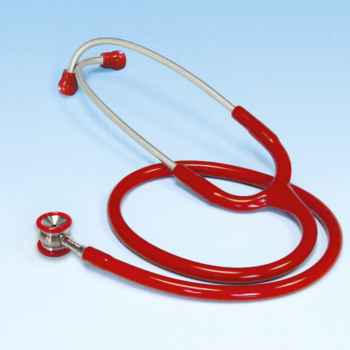 Doppelkopf-Stethoskope aus Edelstahl, beste akustische Übertragung, kombiniertes Edelstahl-Bruststück mit isolierendem Kunststoffrand, integrierte Edelstahl-Ohrbügelfeder, extra kräftiger PVC-Schlauch, angenehm weiche Ohroliven, inkl. 4 Ersatzohroliven zum Schrauben und 1 Ersatzmembrane, 100% latexfrei und nickelfrei, große Membrane: 20 mm Ø, Trichter: 20 mm Ø, Gesamtlänge: 79 cm