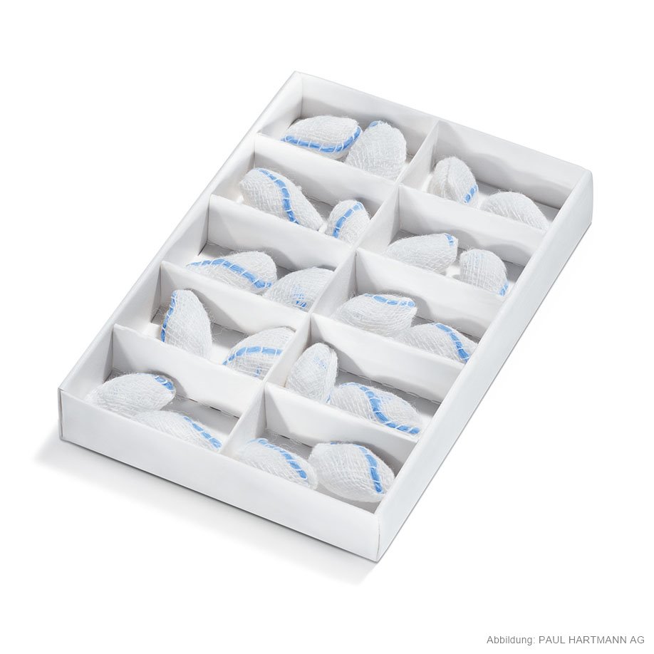 Die handgedrehten sterilen Telaprep® Präpariertupfer mit eingewebtem Telatrast® Röntgenkontrastfaden werden in einer Schiebeschachtel mit Rasterung geliefert. So lassen sie sich optimal handhaben - und ihre exakte Anzahl ist jederzeit auf einen Blick ersichtlich. Die sterilen Telaprep® Präpariertupfer werden in einer Kontrollbox und Peelpackung mit Doppel-Kontrollkarten geliefert.