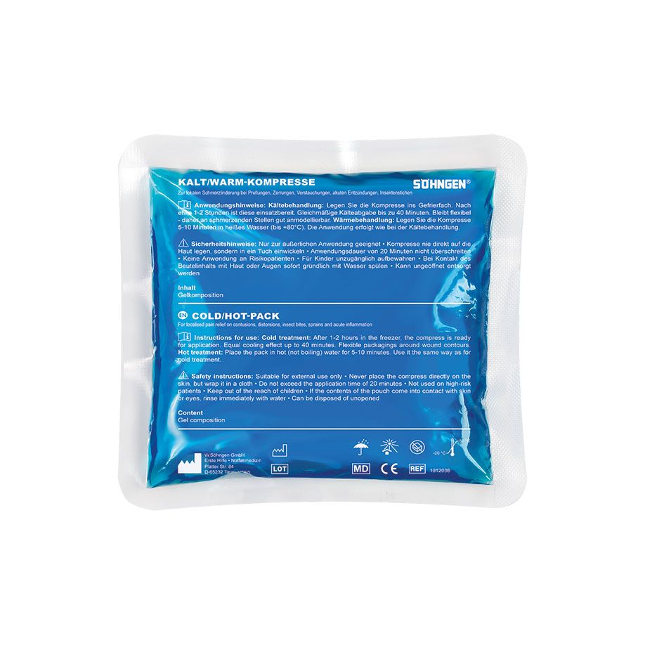 Dauerkompresse, gut anmodelierbar, bis -30°C flexibel, gleichmäßige Kälteabgabe bis ca. 45 Min., auch als Wärmekissen verwendbar. Vorkühlen im Gefrierfach, Vorheizen im Wasserbad (bis +60°C), nicht für Mikrowelle geeignet.