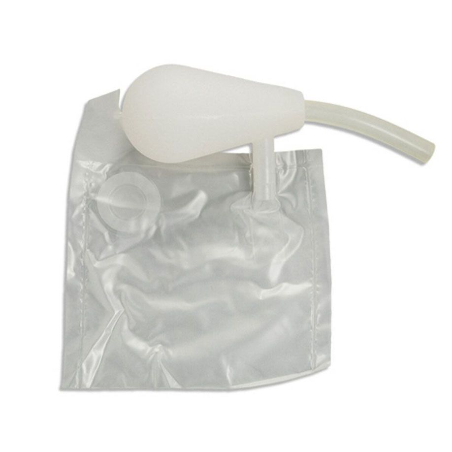 Das Einweg-Absaugsystem besteht aus einer birnenförmigen Pumpe, einem Absaugschlauch und einem Auffangbeutel. Überschüssige Flüssigkeit wird effizient aus dem Beutel abgesaugt und nach Gebrauch kann alles sicher im Transportbeutel verstaut und vorschriftsmäßig entsorgt werden.