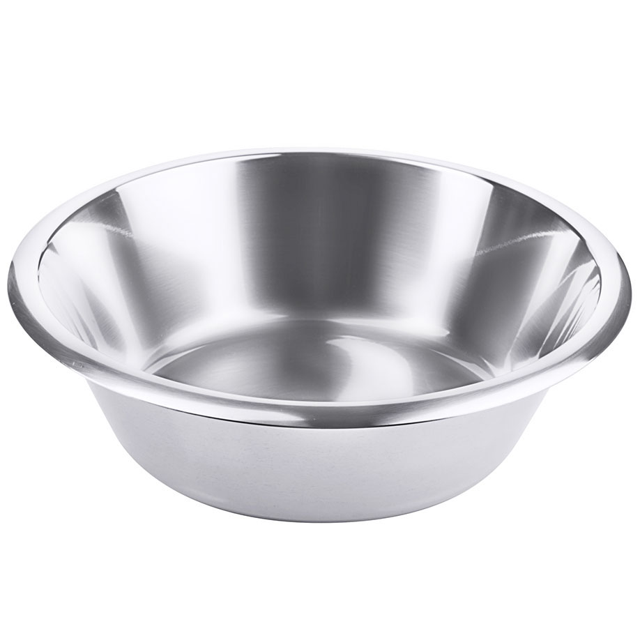 flache konische Form, aus Edelstahl 18/10, seidenmatt poliert, offener, glatter Rand, mittelschwere Qualität, Ø-Boden 16 cm, Höhe 7,5 cm