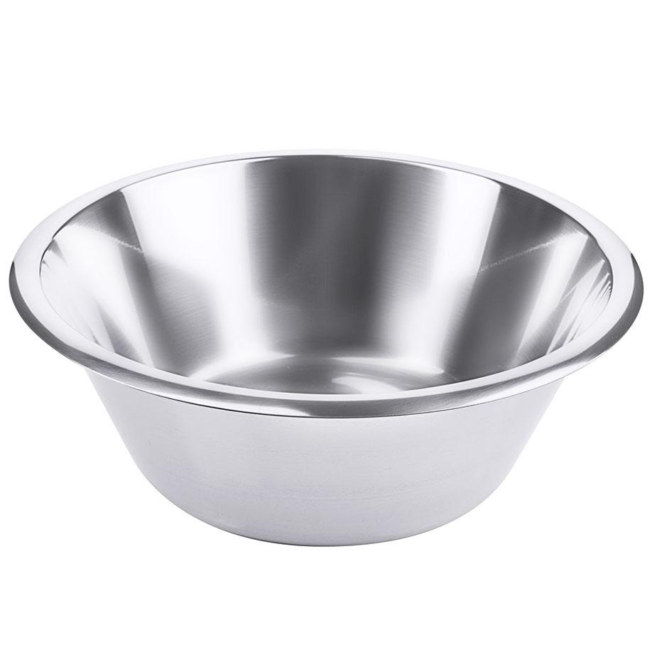 flache konische Form, aus Edelstahl 18/10, seidenmatt poliert, offener, glatter Rand, mittelschwere Qualität, Ø-Boden 16 cm, Höhe 9,5 cm