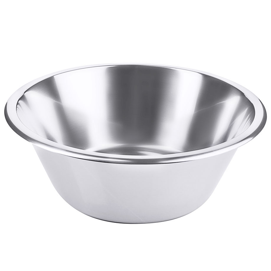 flache konische Form, aus Edelstahl 18/10, seidenmatt poliert, offener, glatter Rand, mittelschwere Qualität, Ø-Boden 21,5 cm, Höhe 12 cm