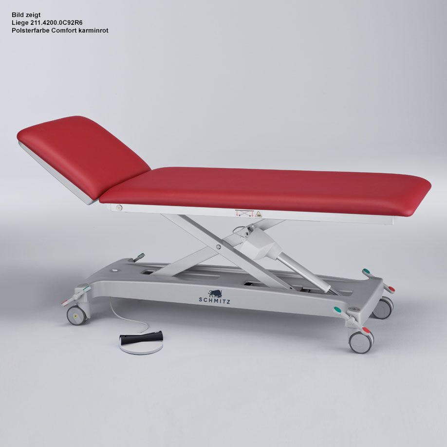 Höhenverstellung elektromotorisch von 500 bis 920 mm mit Hand- oder Fußbedienung mit Doppelklickfunktion zum Aktivieren der Funktion, ein Sperrschalter aktiviert und deaktiviert das Bedienelement, Kopfteil über Gasfeder verstellbar von -20° bis +40°. Polster 70 mm Kunstleder comfort titangrau, 2-teilig, Breite 650 mm. Anschlusskabel 2,4 m mit Steckernetzteil, Unterteilabdeckung aus Kunststoff, silbergrau. Mit 4 Nivellierfüßen. Sichere Arbeitslast: 225 kg. Maße: 195 x 65 x 50-92 cm