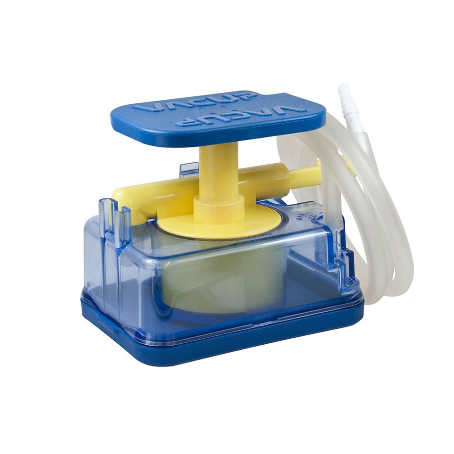 Für den täglichen Einsatz entwickelte, energieunabhängige, wartungsfreie Sekret-Fußabsaugpumpe zum Absaugen von größeren Ansammlungen von Blut, Schleim, Speichel etc., sowie zähflüssigen und festen Nahrungsbestandteilen. Fußabsaugpumpe inkl. Absauggefäß 650 ml mit Überlaufsicherung, 1300 mm Absaugschlauch (Ø 8 mm) mit Schlauchverbinder, Gewicht: 850 g, max. Vakuum: -82 kpa, -615 mmHg, -0,82 bar bei einer Saugleistung von 72 l/min (Luft), autoklavierbar bis 121 ºC, Maße (LxBxH): 180 x 130 x 110 mm.