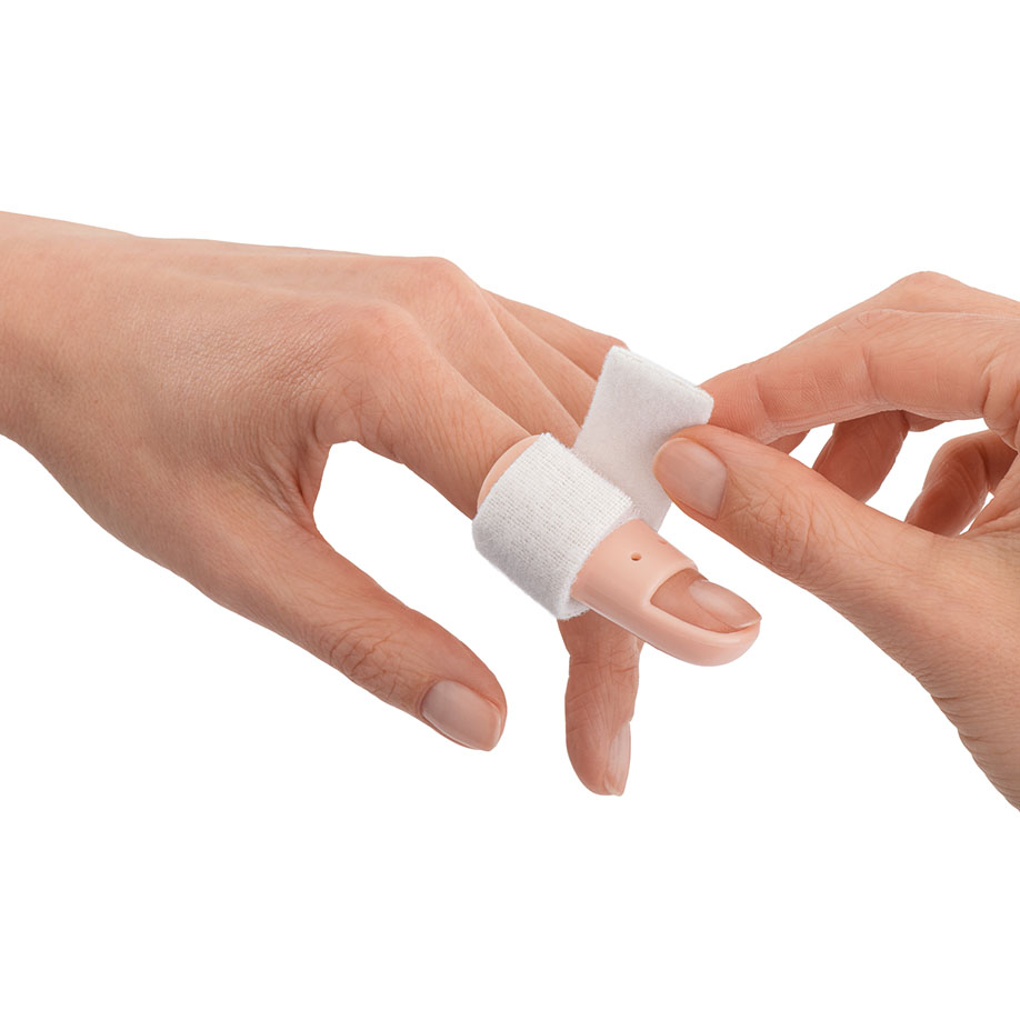 Zur Befestigung der Fingerschienen. Straps um die Schiene legen und mit Klettverschluss fixieren. Überstehendes Strapsband abschneiden. 1,8 cm breit und 9 cm lang