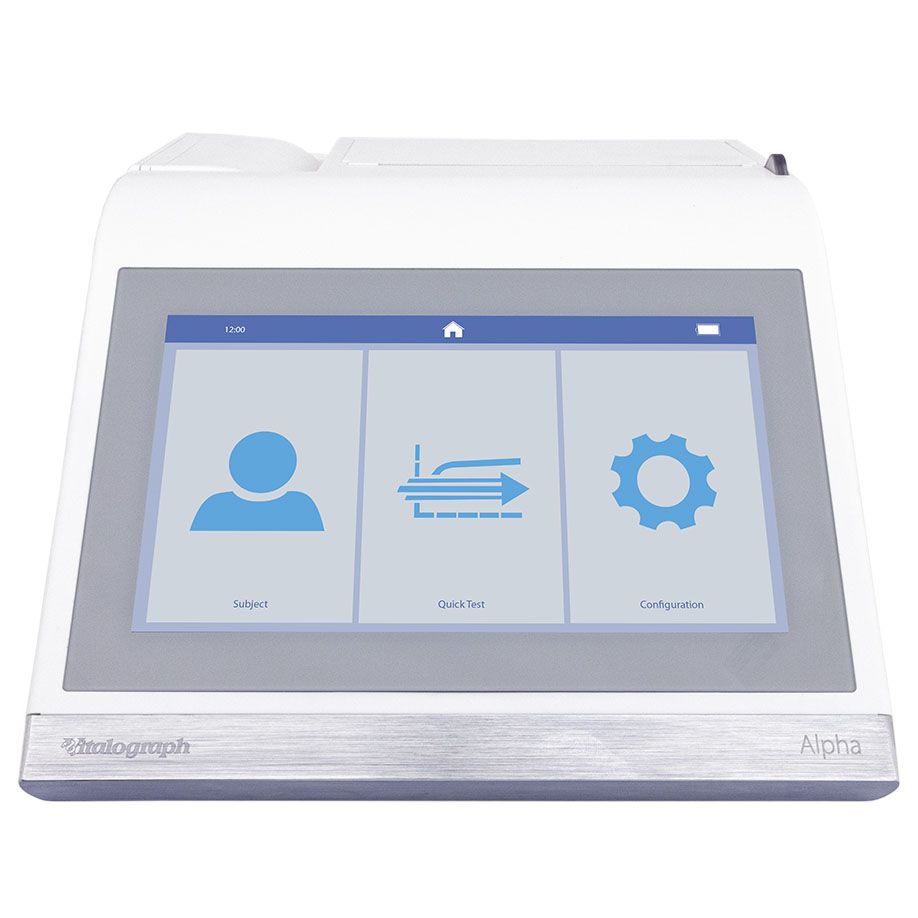 Das einfach zu bedienende All-in-One-Spirometer mit Touchscreen und integriertem Thermodrucker. Das Vitalograph® ALPHA Connect passt sich perfekt an die Arbeitsabläufe und Aufgaben an. Egal ob stationär in einem Untersuchungszimmer, über WLAN verbunden in der gesamten Praxis oder komplett mobil mit Akku und integriertem Thermodrucker. Die hochwertige Messtechnologie zur zuverlässigen Atemwegsdiagnostik bei Erwachsenen und Kindern liefert absolut präzise Ergebnisse.