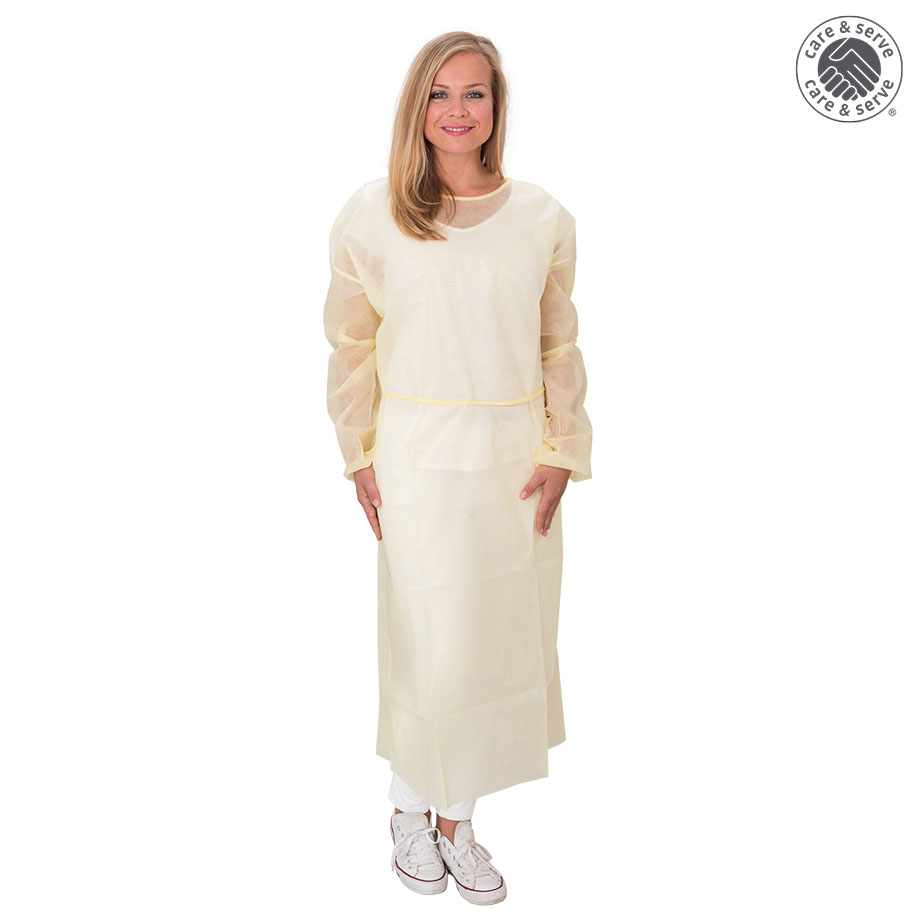 als Vorsichtsmaßnahme zum Schutz vor Kreuzkontaminationen, Polypropylen-Spinnvlies ca. 18 g/m², ca. 140 x 130 cm (B x L), mit solider PE-Laminierung an Armen und Frontpartie, Bänder zum Binden in Nacken und Taille, mit Gummizugbündchen an den Handgelenken