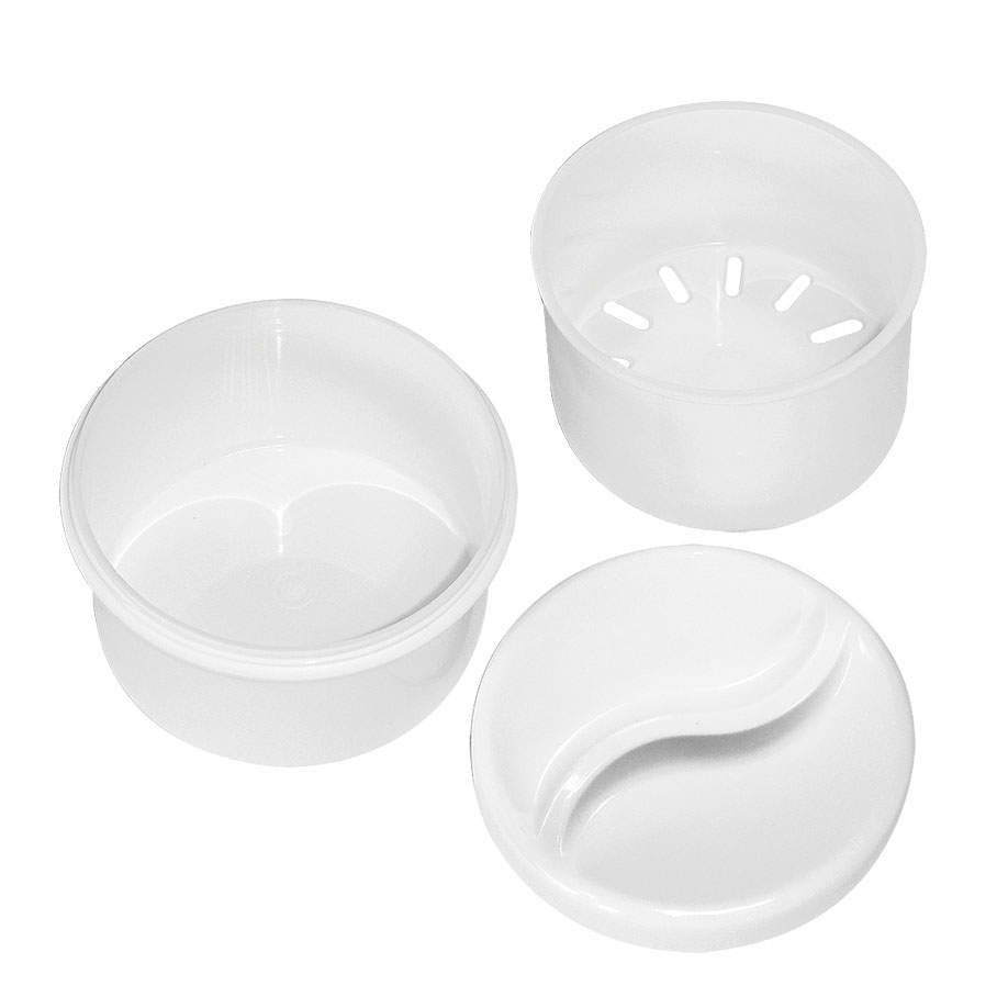 Ideal für die hygienische Aufbewahrung von Zahnprothesen, mit Deckel und herausnehmbarem Siebeinsatz zum Abspülen der Prothese, aus PP, autoklavierbar bis 130°C, Höhe inkl. Deckel ca. 6 cm, Ø inkl. Deckel ca. 9,5 cm